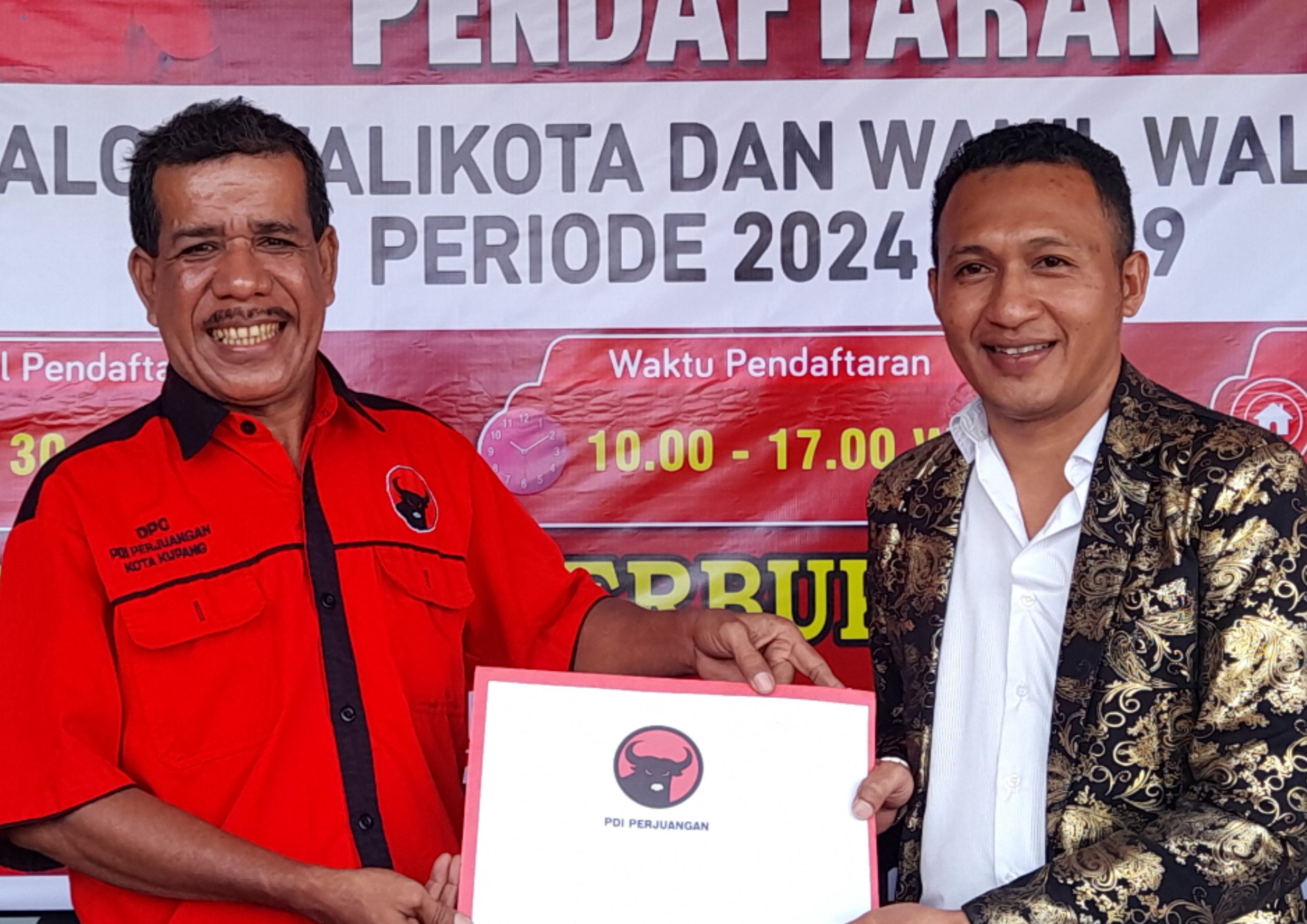 KUPANG, HN – Advokat muda Bildad Thonak, resmi mendaftar sebagai Calon Wali Kota Kupang periode 2024-2029 ke Dewan Pimpinan Cabang (DPD) PDI Perjuangan, Jumat 26 April 2024 sore.